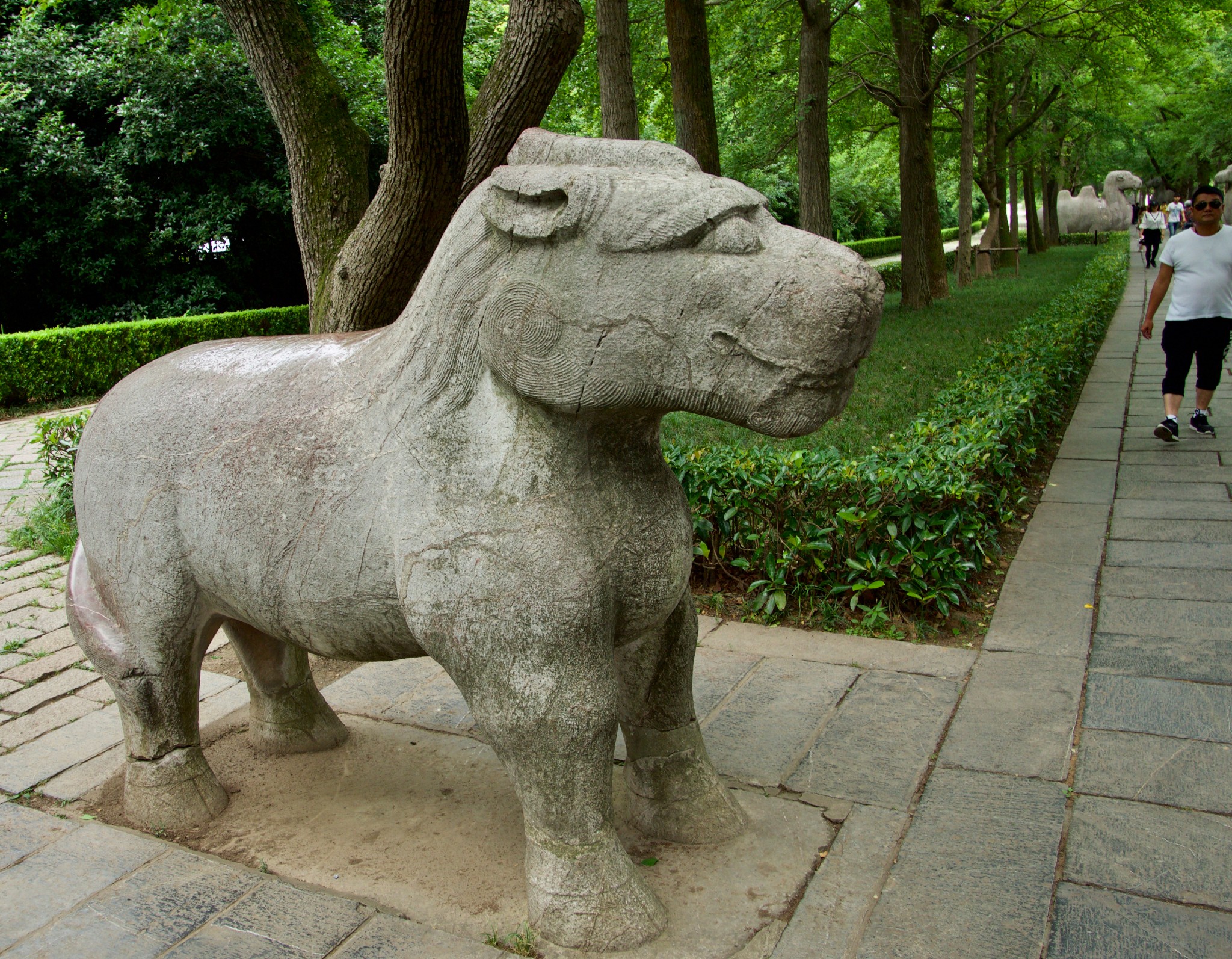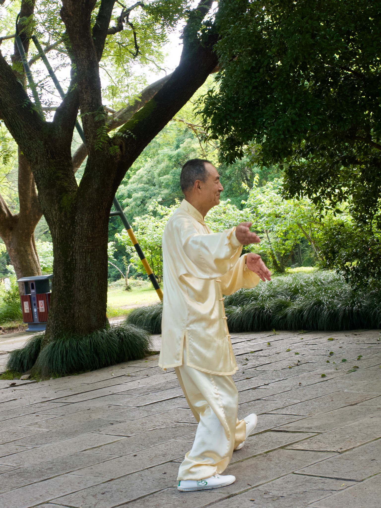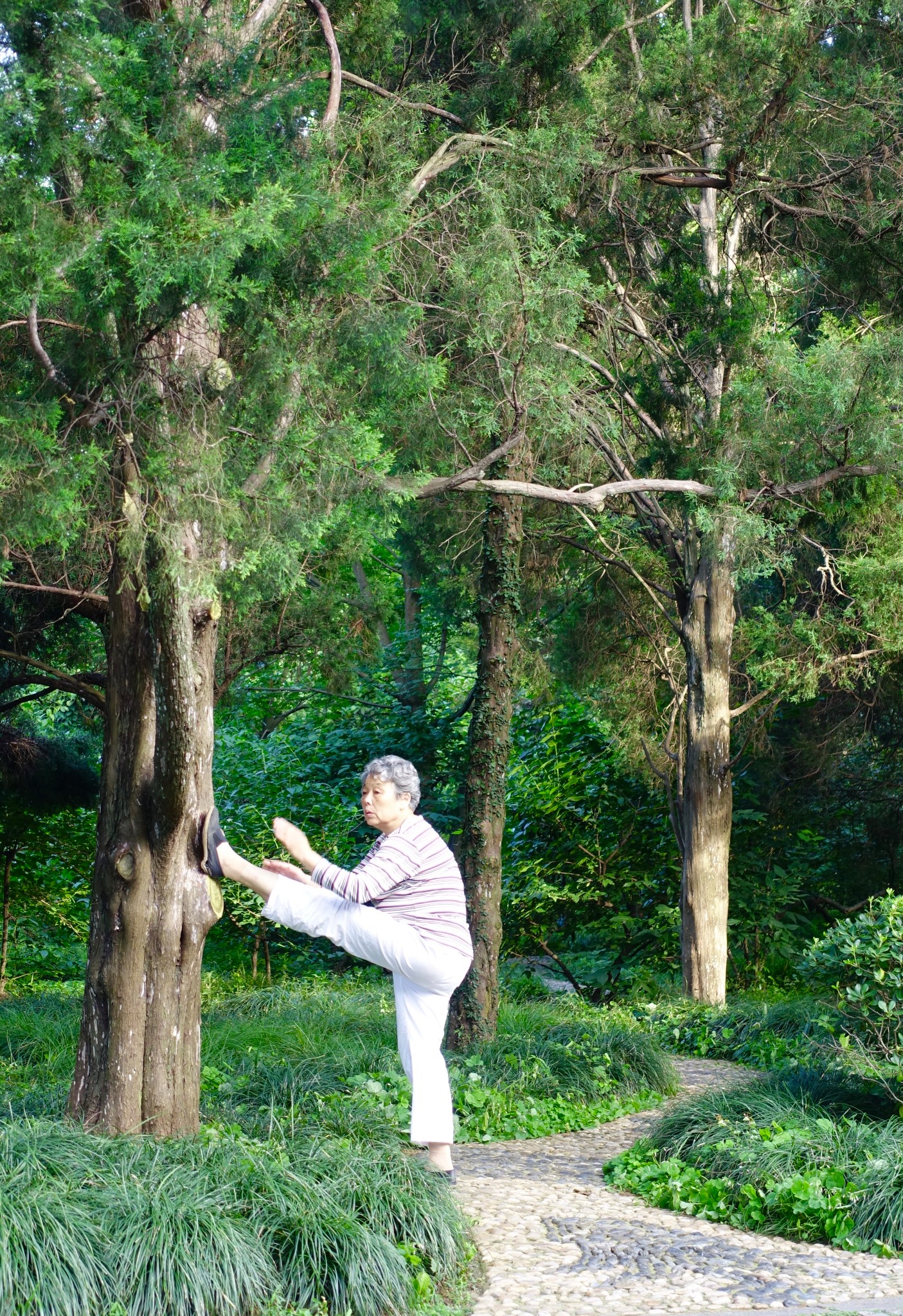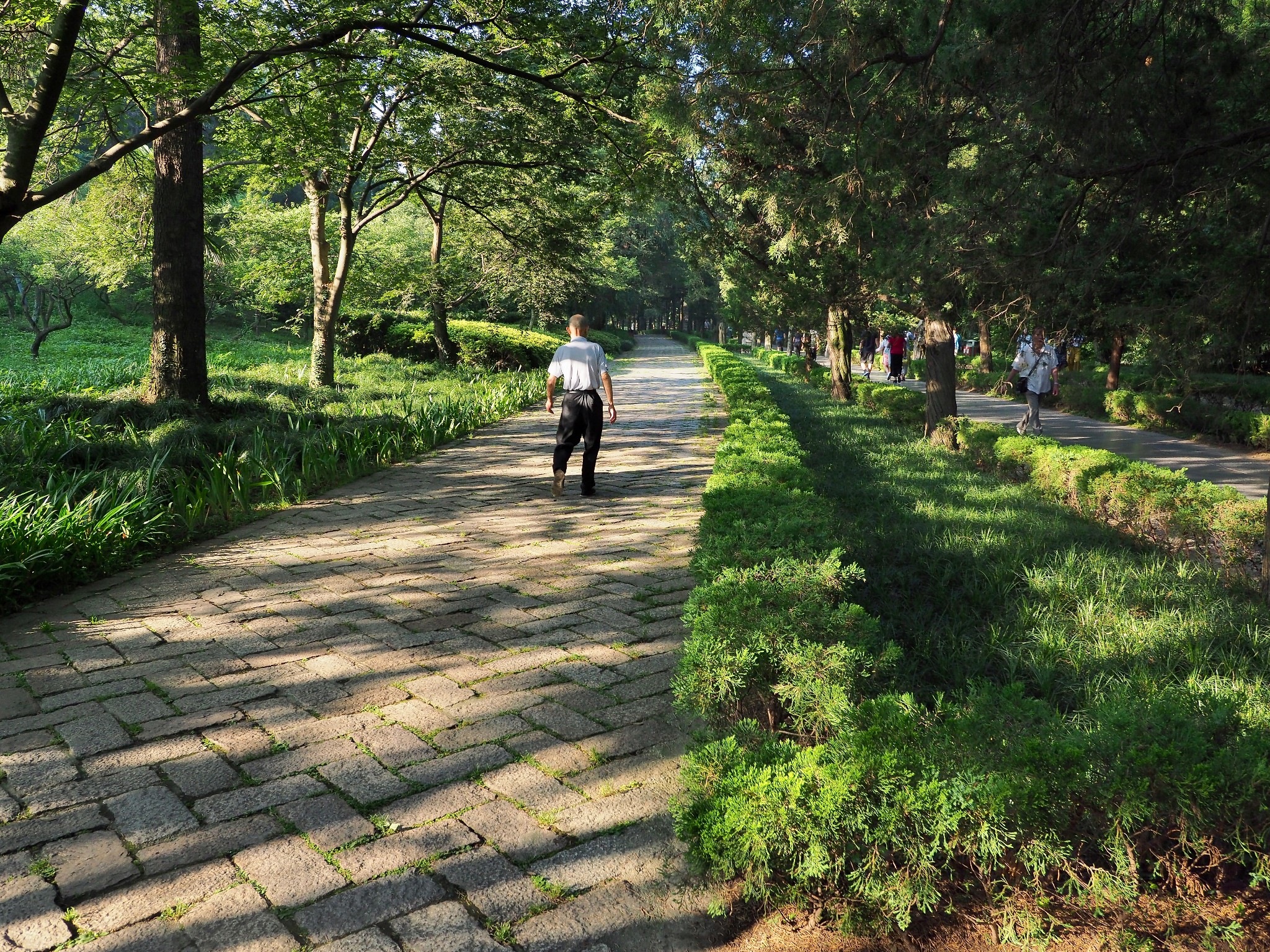 南京 人給我的另一個印象,就是很熱愛運動,我觀察不少年長的長輩,個個走起路來身子非常挺拔,腳步輕盈、筋骨柔軟,在森林中不時自各處傳來高吭宏亮的歌聲;一個古代的帝王陵墓到了現代提供了一個如此閒適的大眾空間,或許也可算是一種人類社會型態演變的過程,個人覺得很是有趣。