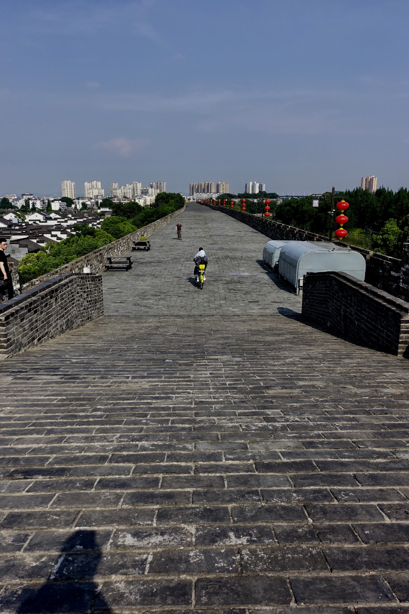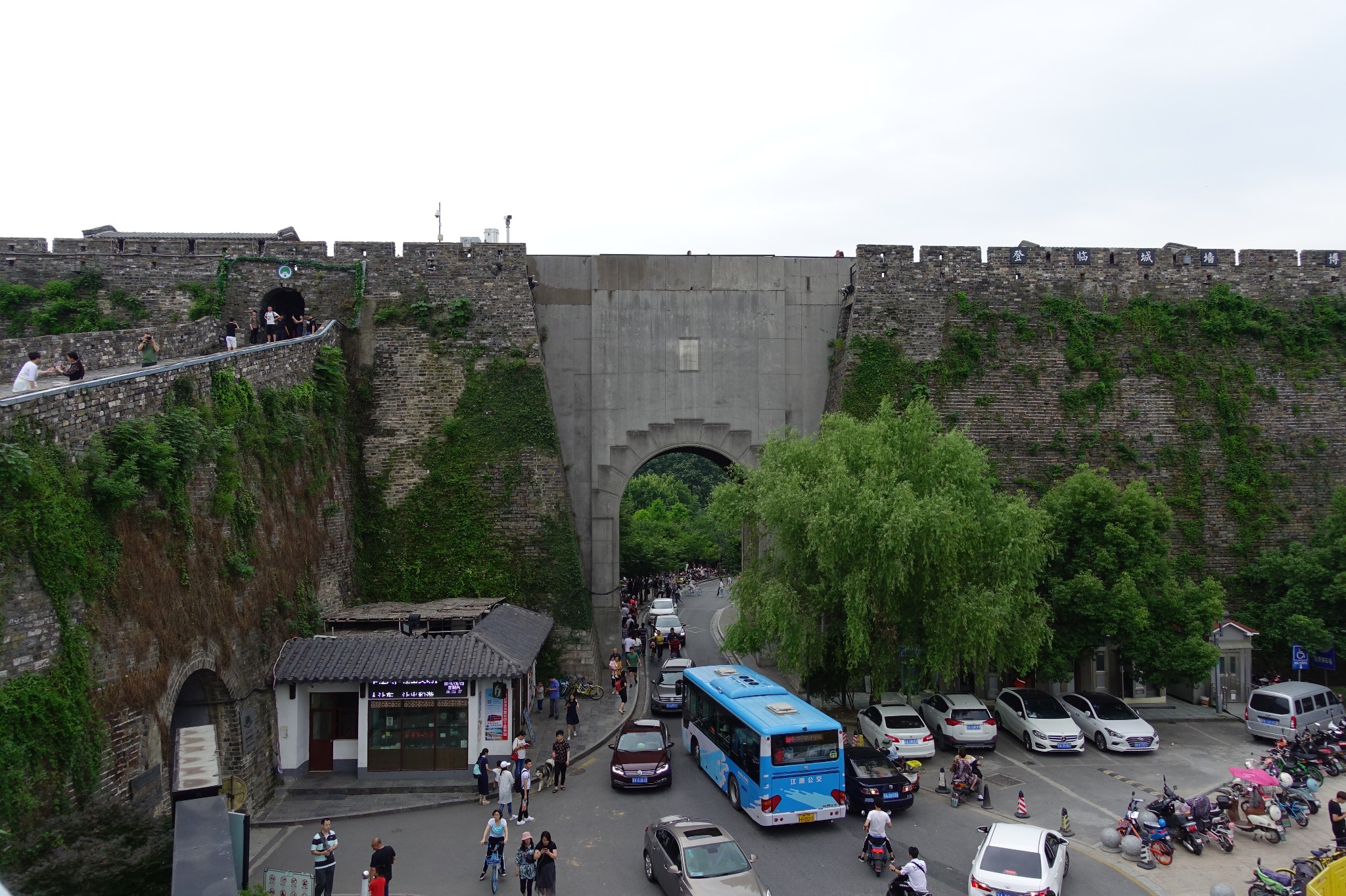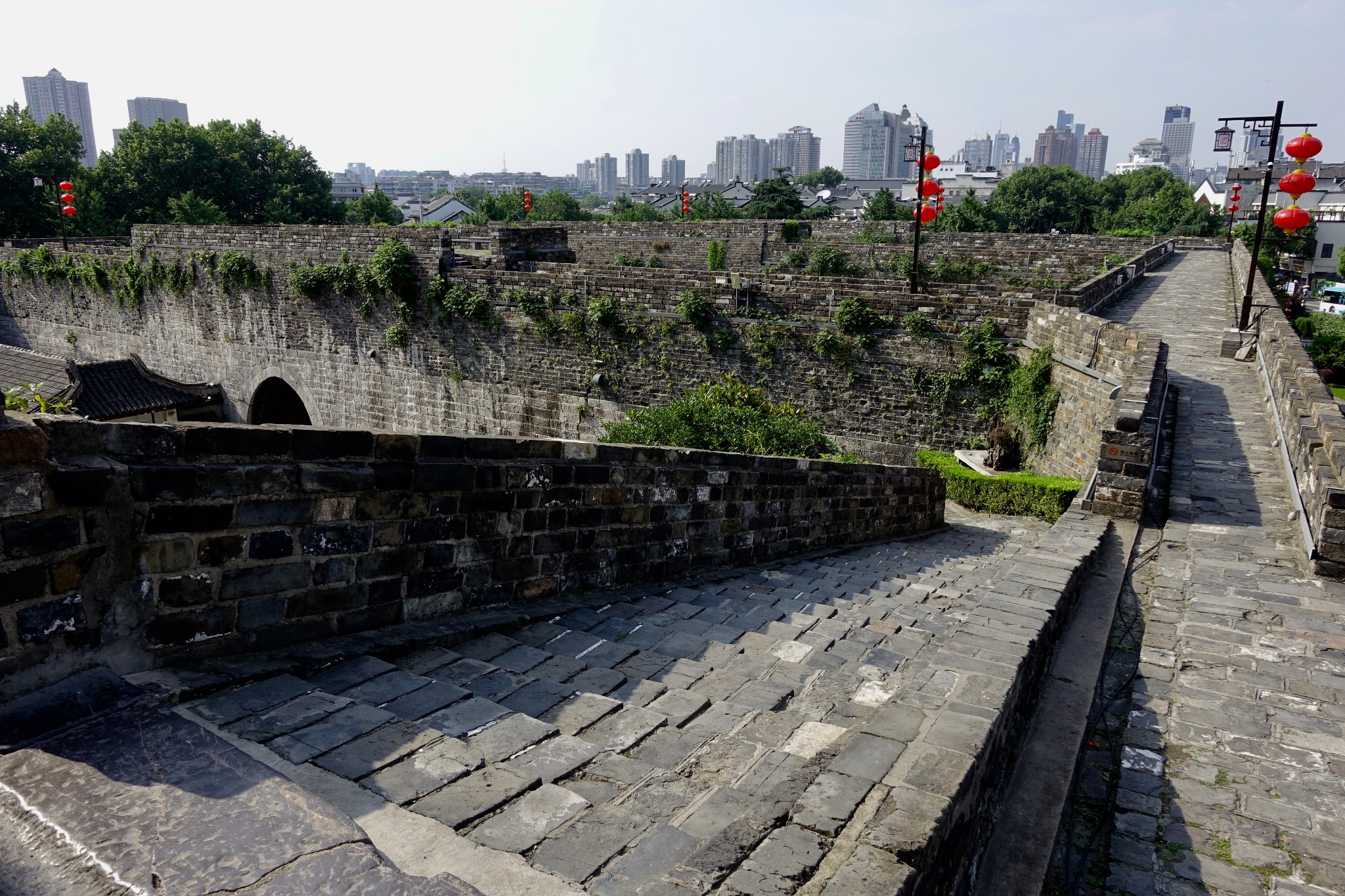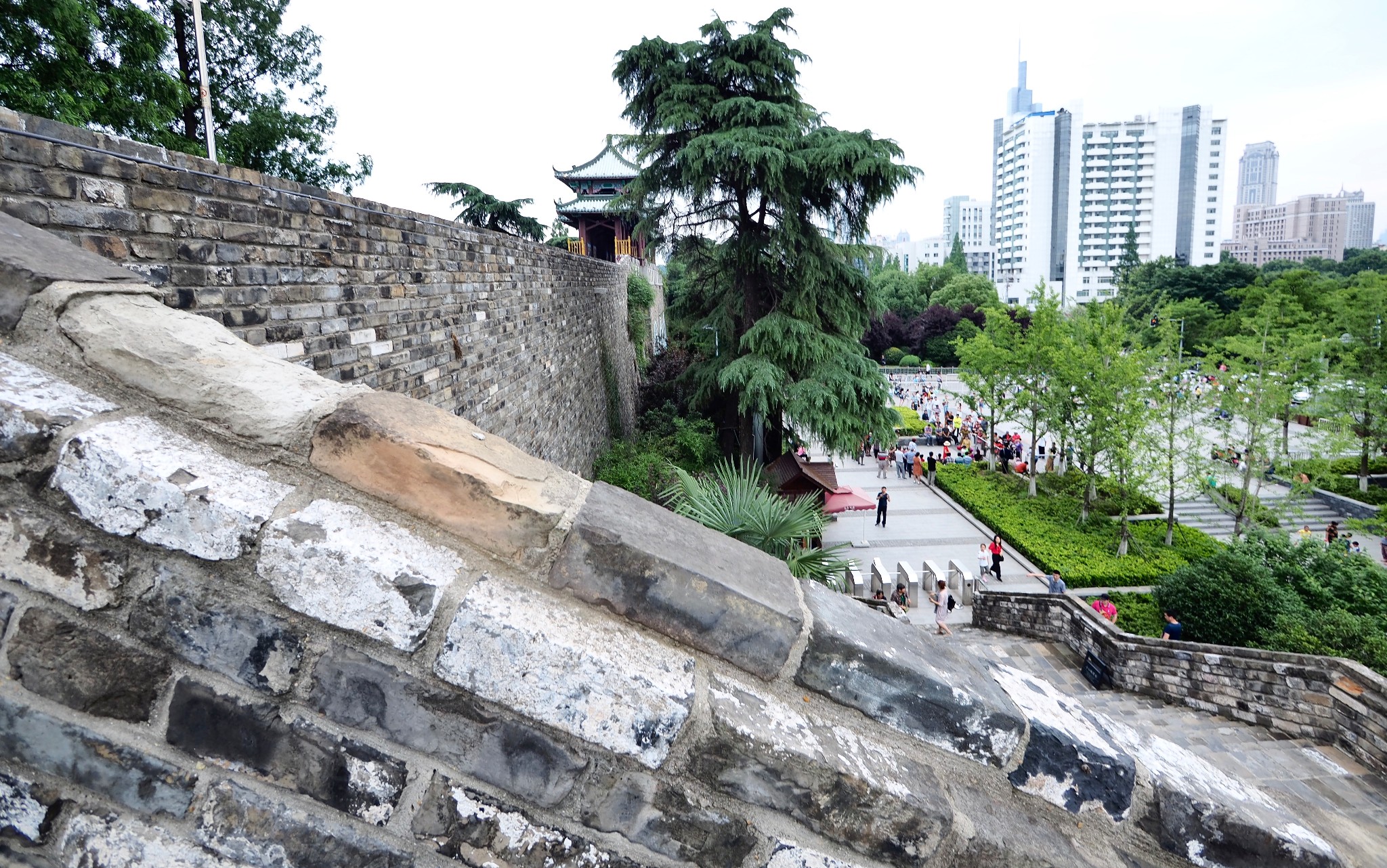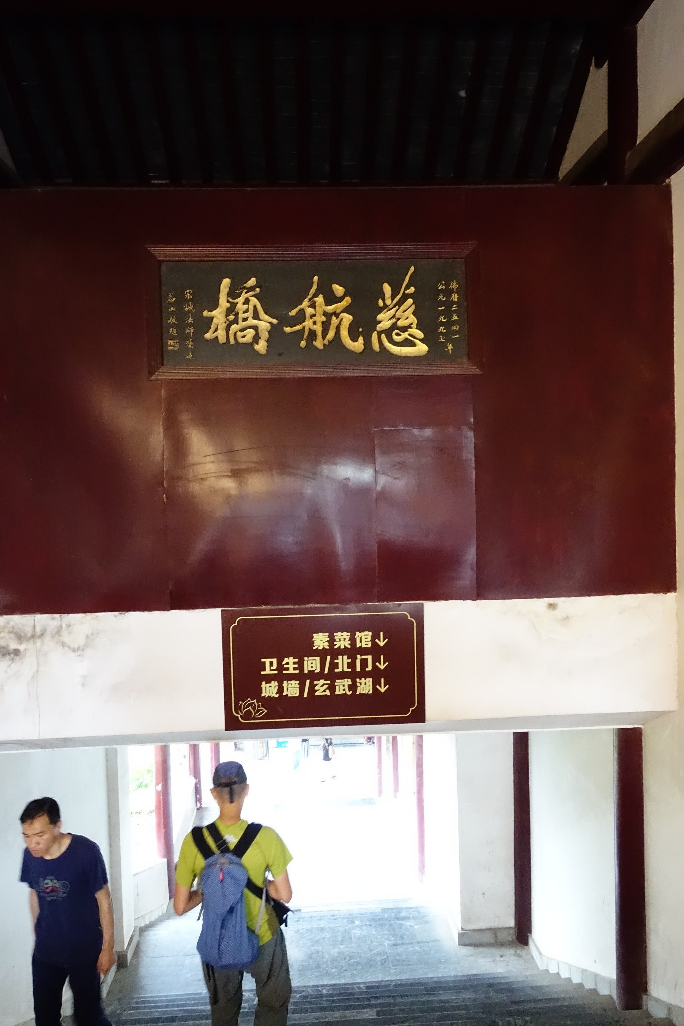 走到雞鳴寺的底部,通過一個長廊『慈航橋』,令我們很意外的,居然可通達城牆,上了城牆就可看到玄武湖大部份的湖面,令我們眼睛為之一亮,也對於這樣的設計感到佩服,節省了不少旅人尋路的時間及精神。