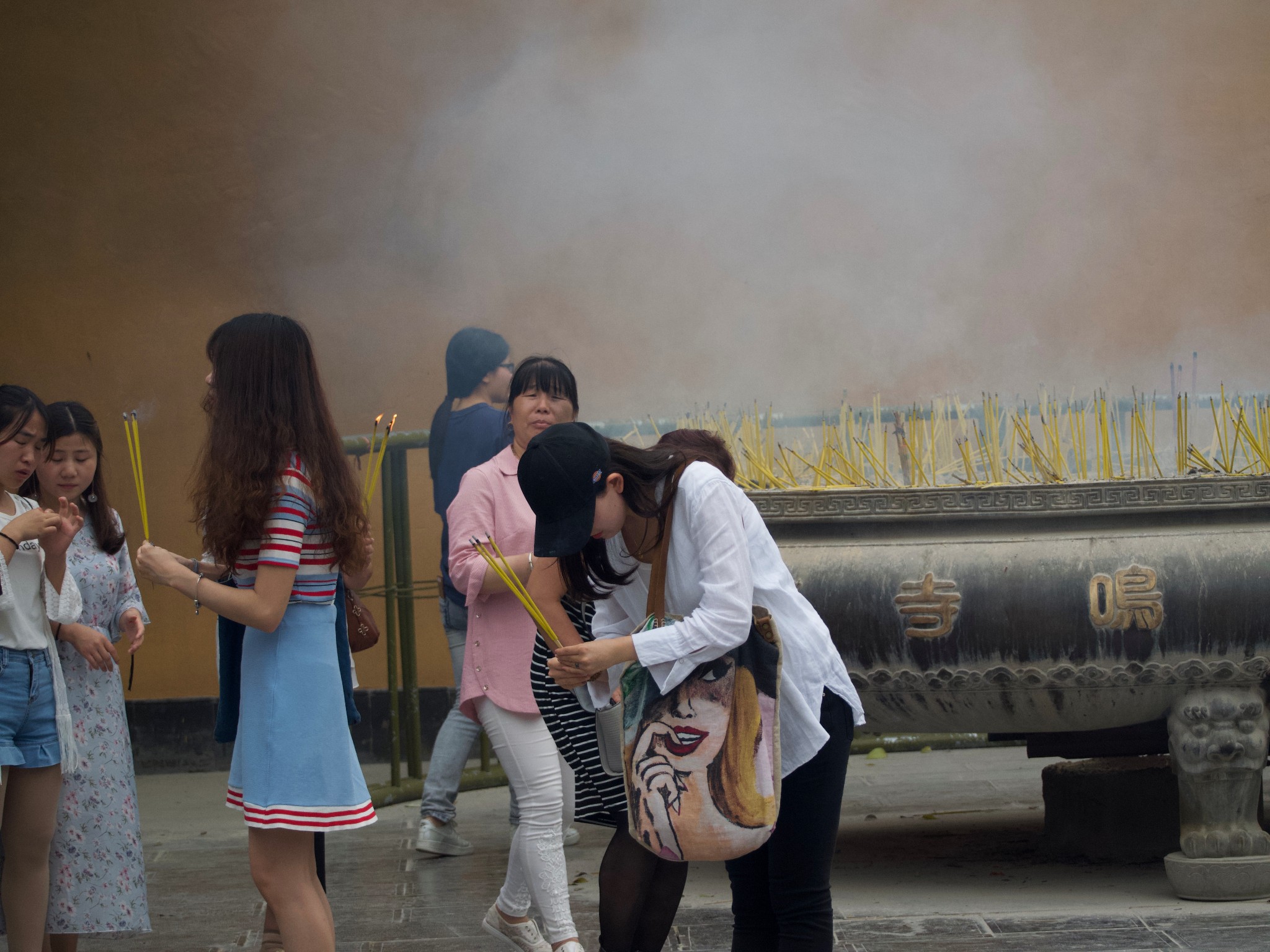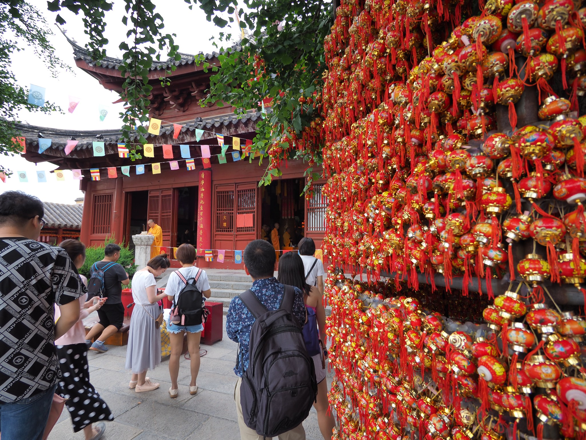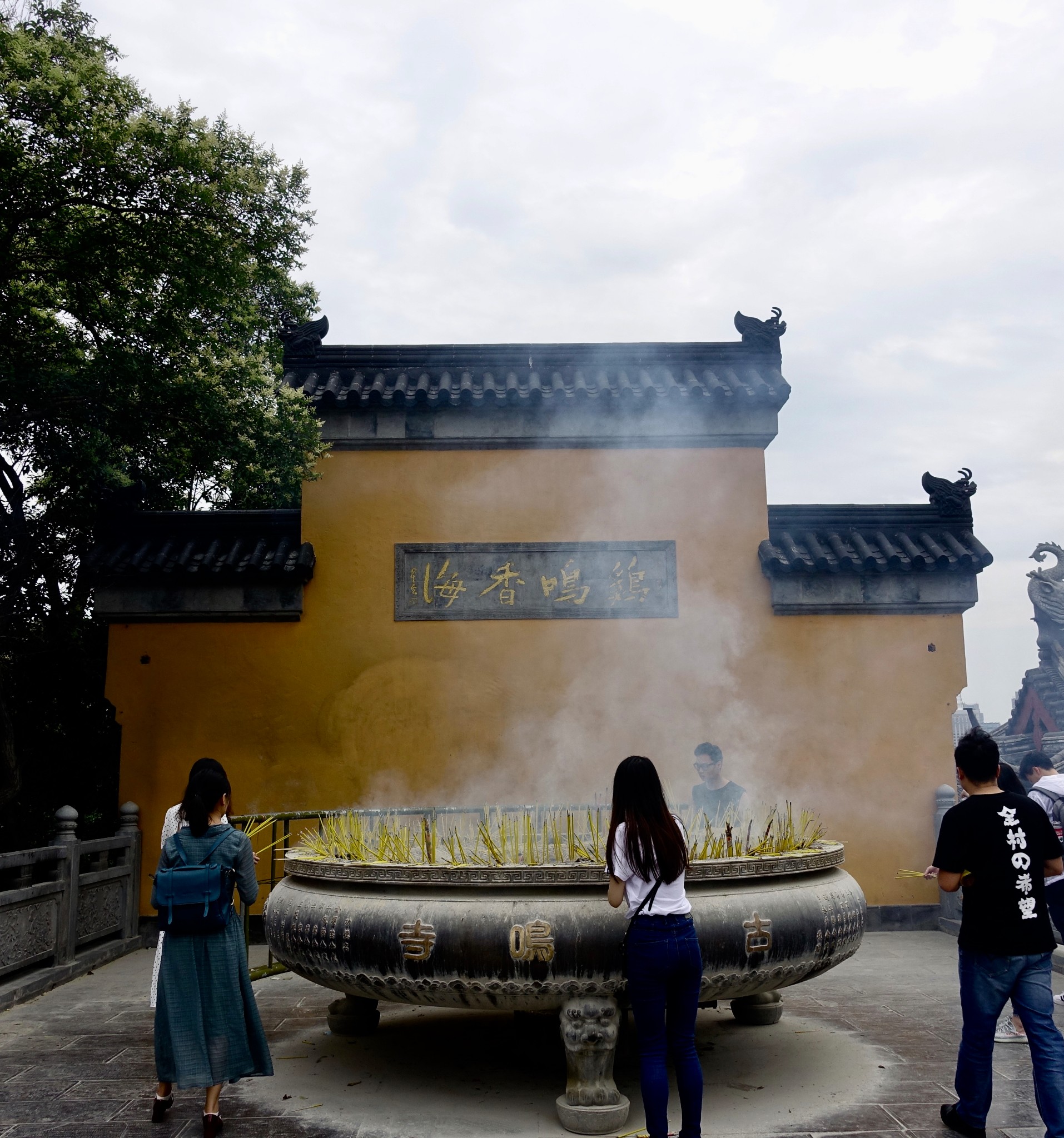 雞鳴寺位於玄武 湖南 岸,我們原本腳程就不慢,果然很快就到達。是日是週六,又逢當日有法會,雞鳴寺好不熱鬧,善男信女不分老少來此求個好運。寺內知名的建築有天王殿、藥師塔、毗盧寶殿、鼓樓等.. 不過最吸引我的卻是在台灣很少見到的『大香爐』(我個人沒見過);其廣口造型配著黃色的燃香顯得特別有古意,添了幾分淡雅的氣息。