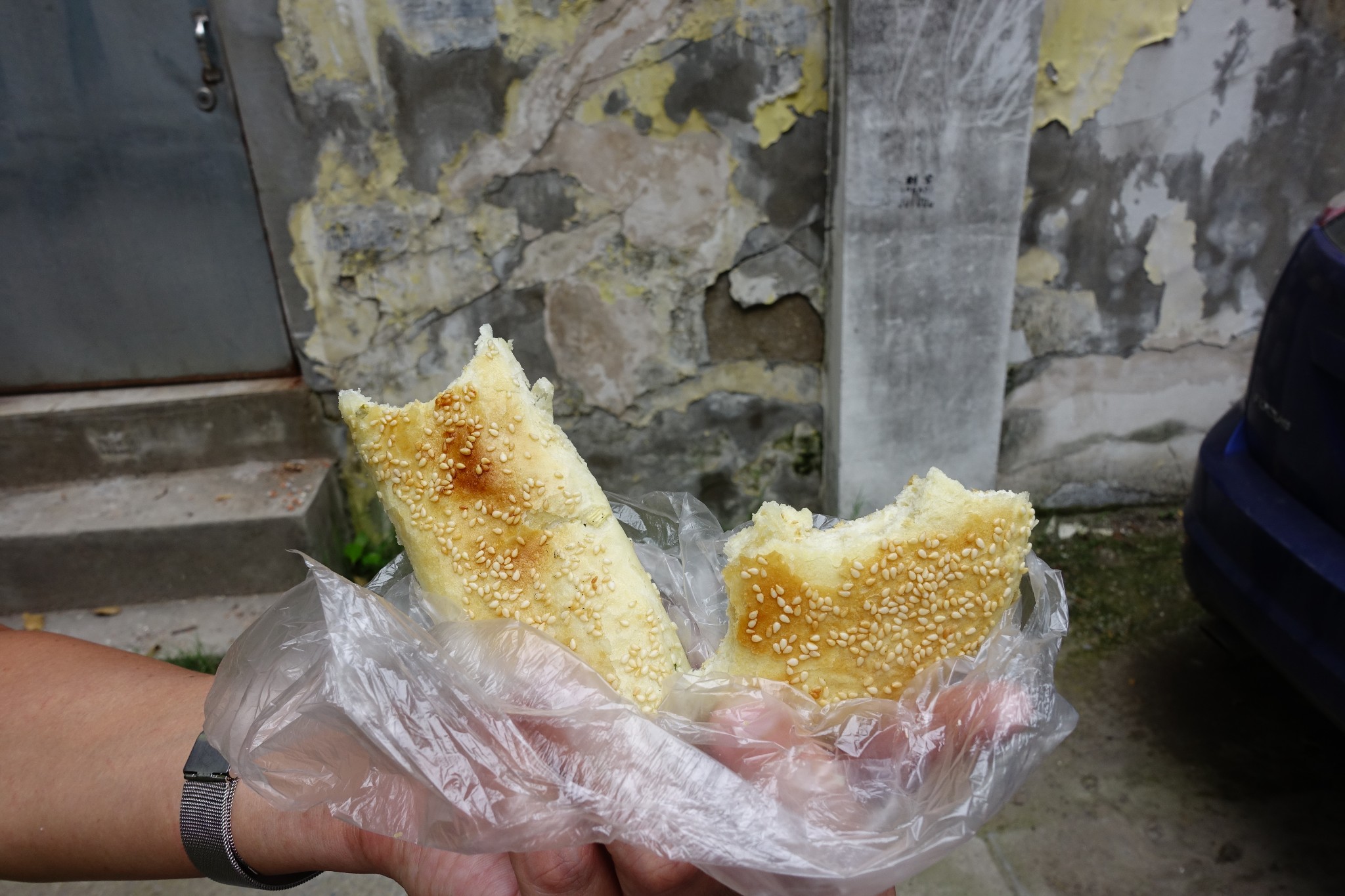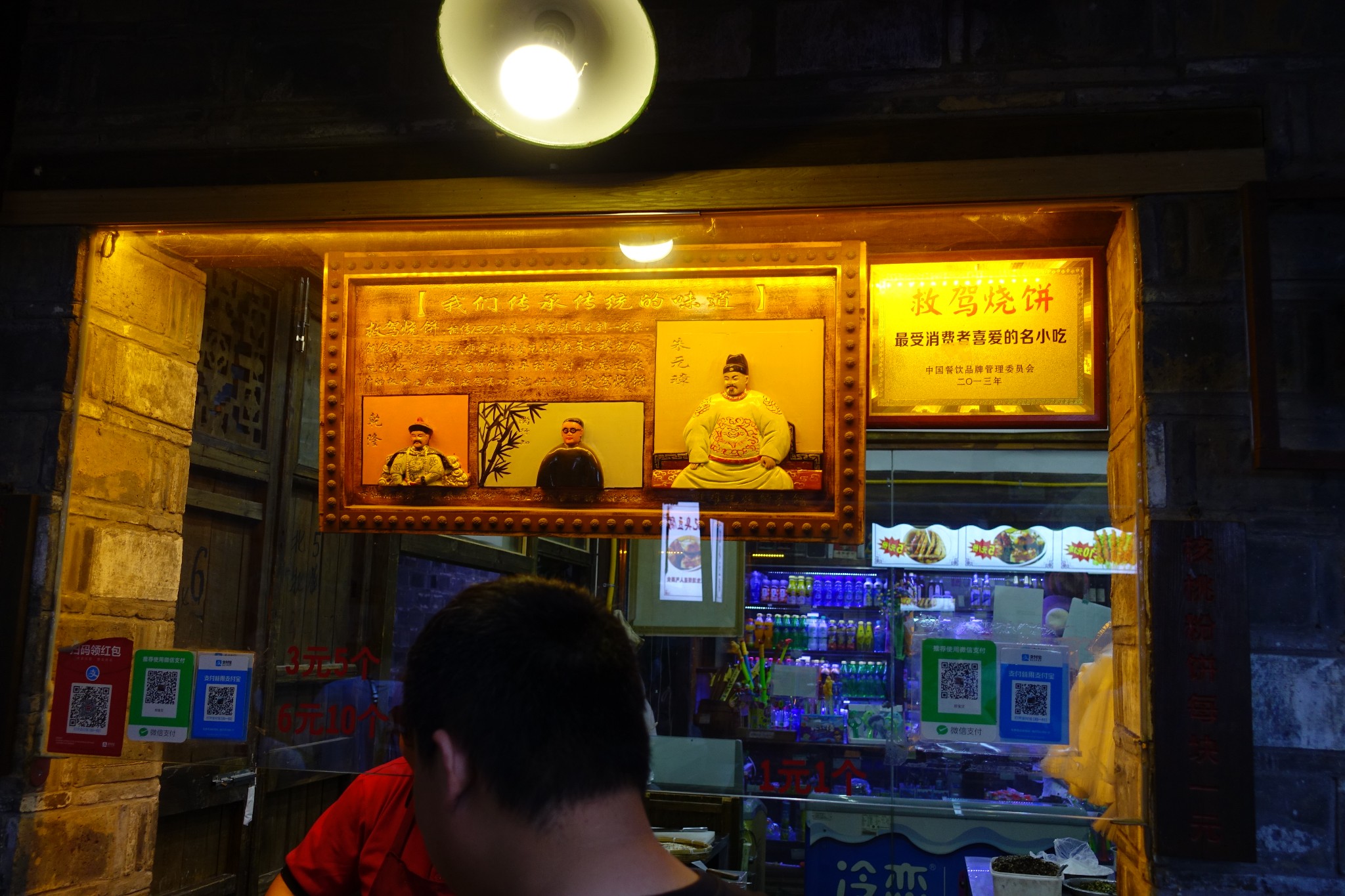 出酒店不遠,立即被周圍幽靜環境吸引,或是因為附近有軍事單位,商業氣息不濃,所以顯得特別單純。走在巷弄間,很快被一家小小的燒餅店吸引,因為下飛機後也沒吃什麼東西,後面會需要走多遠多久,內心也沒個準兒; 當下不再抵檔被勾起的食慾,買了一甜一鹹,開啓了我首次使用微信支付的經驗。老闆很內向,一個燒餅一元!買了即吃,口中紮實的麵香真是令我大大驚艷,一口接一口的很快吃完了,原計劃第二天早上六點想要再追加多買些,可惜還沒有出爐,之後在其他景區買了其他家有名的燒餅,都無法如這家小店的餅令我無法忘懷。