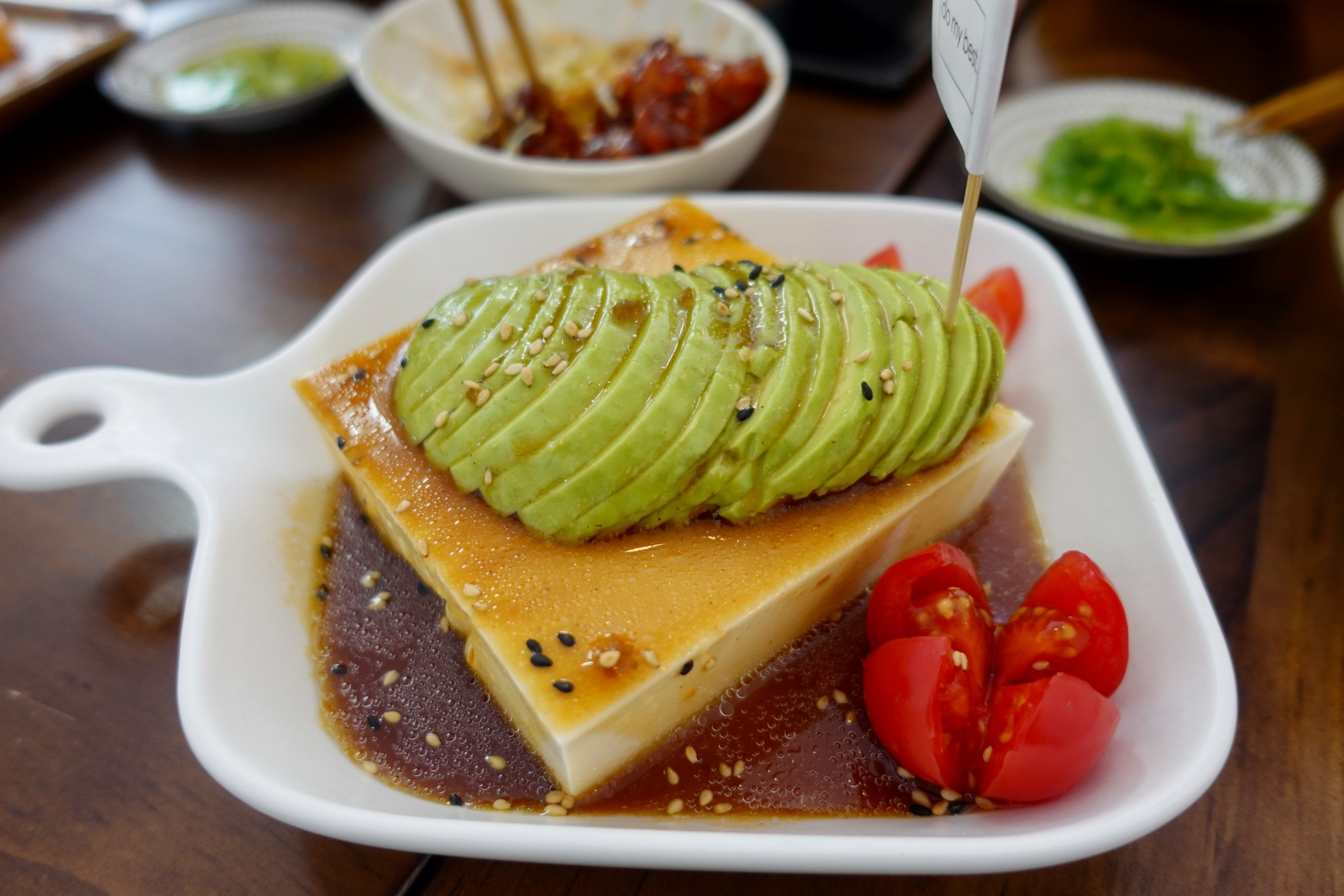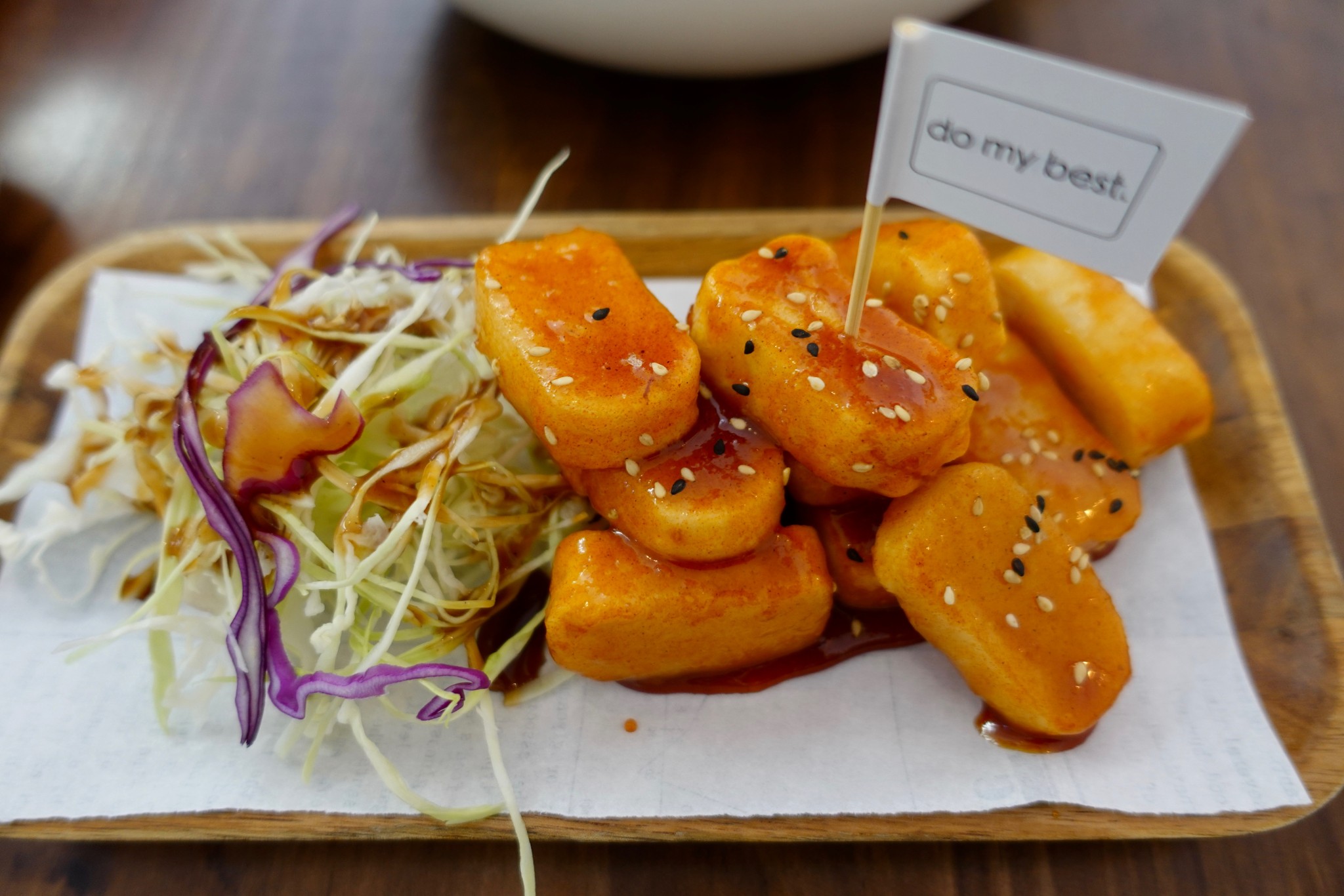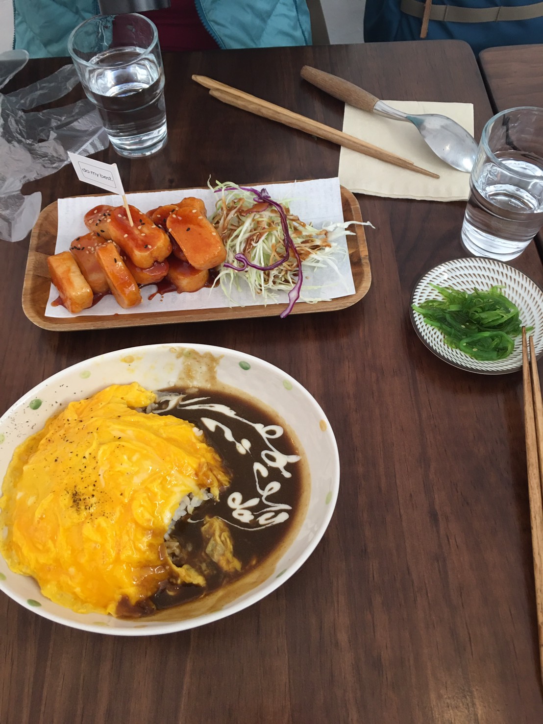 蘇州博物館及忠王府大約用了二個半小時,接近拙政園預約的時段 13:30還有一段時間,可以慢慢散步找個地方用餐,找到一家創意料理 『do my best』,三個人點了牛油果豆腐 沙拉 、招牌手搶腿滑蛋咖喱飯、招牌炸年糕、特製炸雞塊滑蛋咖喱飯,計140人民幣