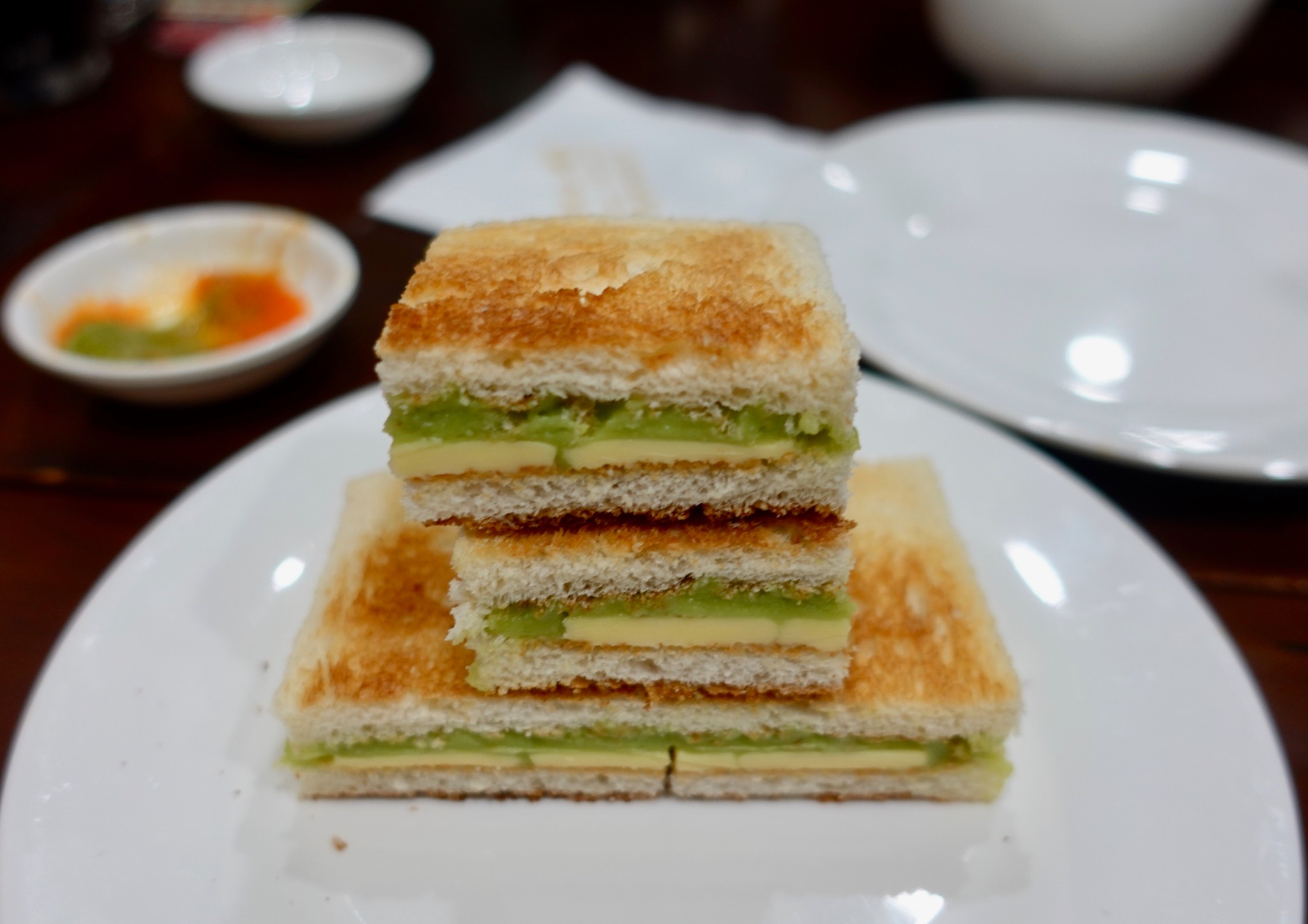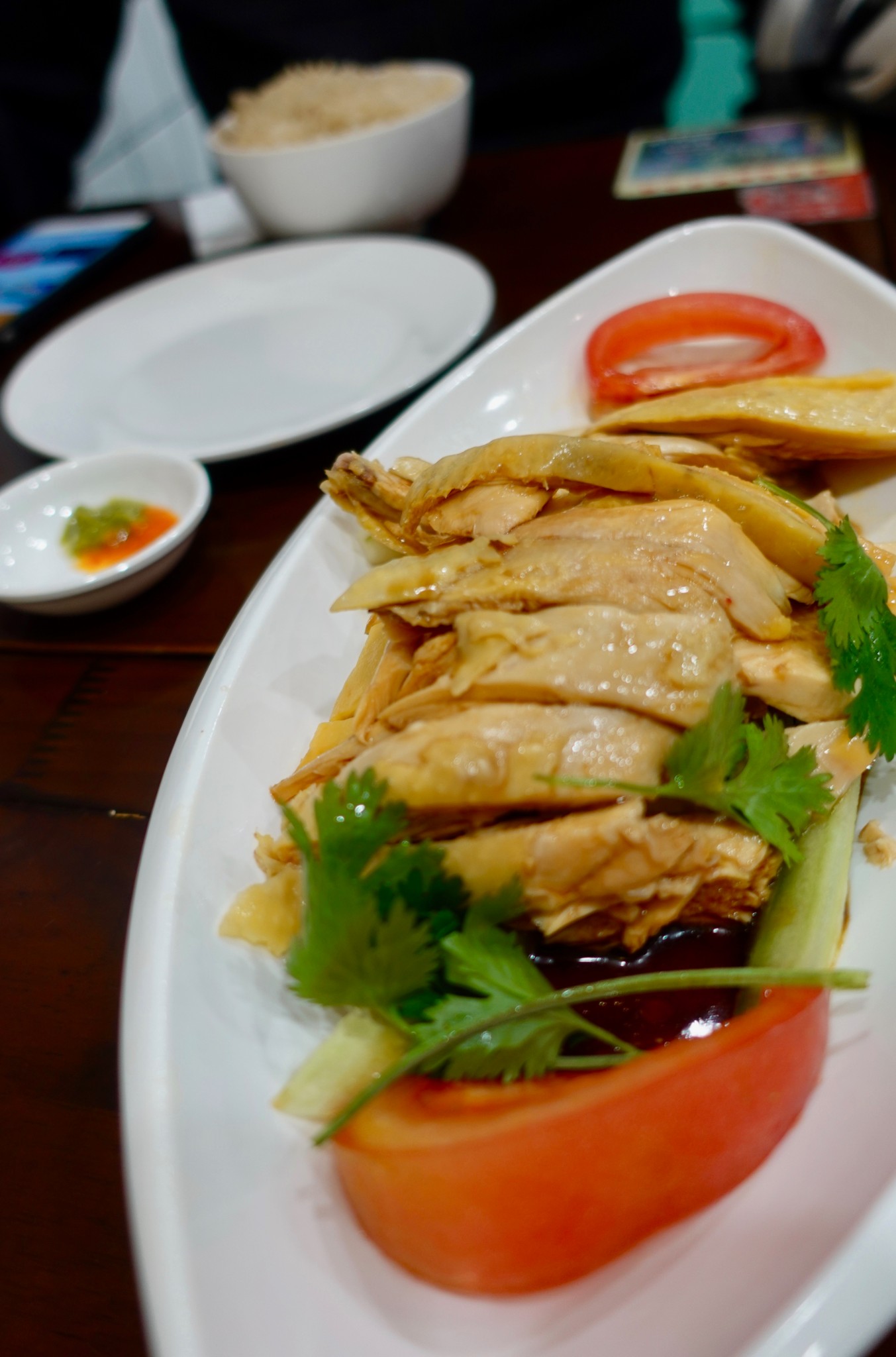 因此決定找家美食吃晚餐,在一個小巷弄裡我們找到一家星洲小館, 海南 雞半隻、咖椰土司、油雞飯、原味飛餅、黑咖啡....; 小小一間店,老闆服務親切,剛到時就我們一家人,沒一會兒就坐滿了,味道非常好,尤其是咖椰土司及原味飛餅令我們非常回味。對了,一定要配著桌邊的辣醬一起吃,拌著油雞飯超級提味兒,這可是老闆再三叮嚀的喲。