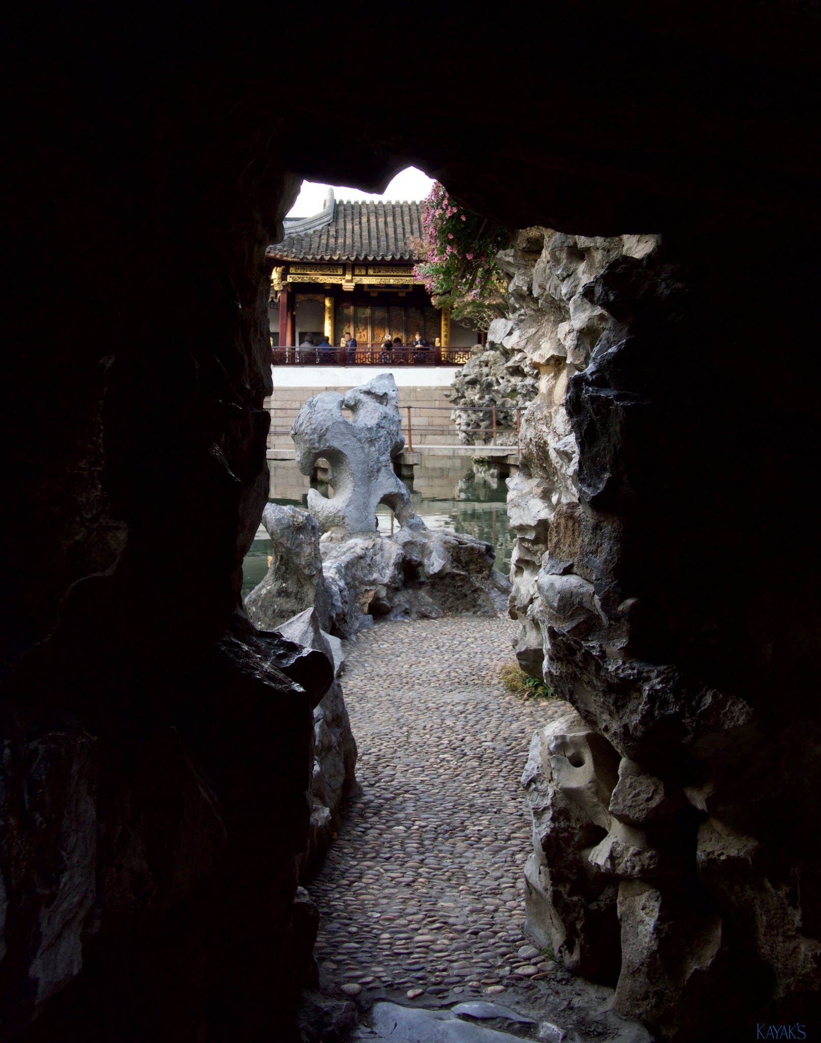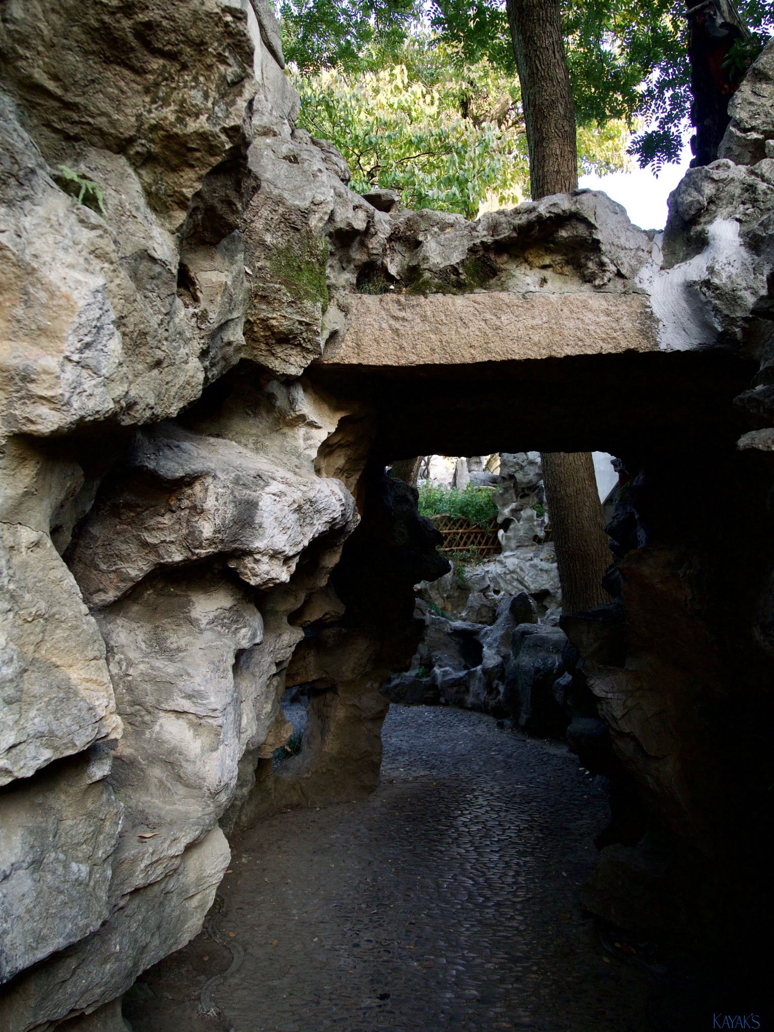 一入園區與拙政園不太一樣的是,特別有個 『遊園方向』的指引,剛開始沒特別的注意,但很快的便明白了,獅子林園內有很大的面積是以假山為主角,假山裡的小 通道 似迷宮般迂迴,非常有趣,但適合一個人通過,非假日時間可以很自在悠閒依自己的方式任意穿梭,但遇假日人潮多時可就沒那麼隨意了,所以難怪要有個『方向』指引,因此若想輕鬆無壓力的心情下體驗獅子林假山的魔力,日期可得好好的選喲。