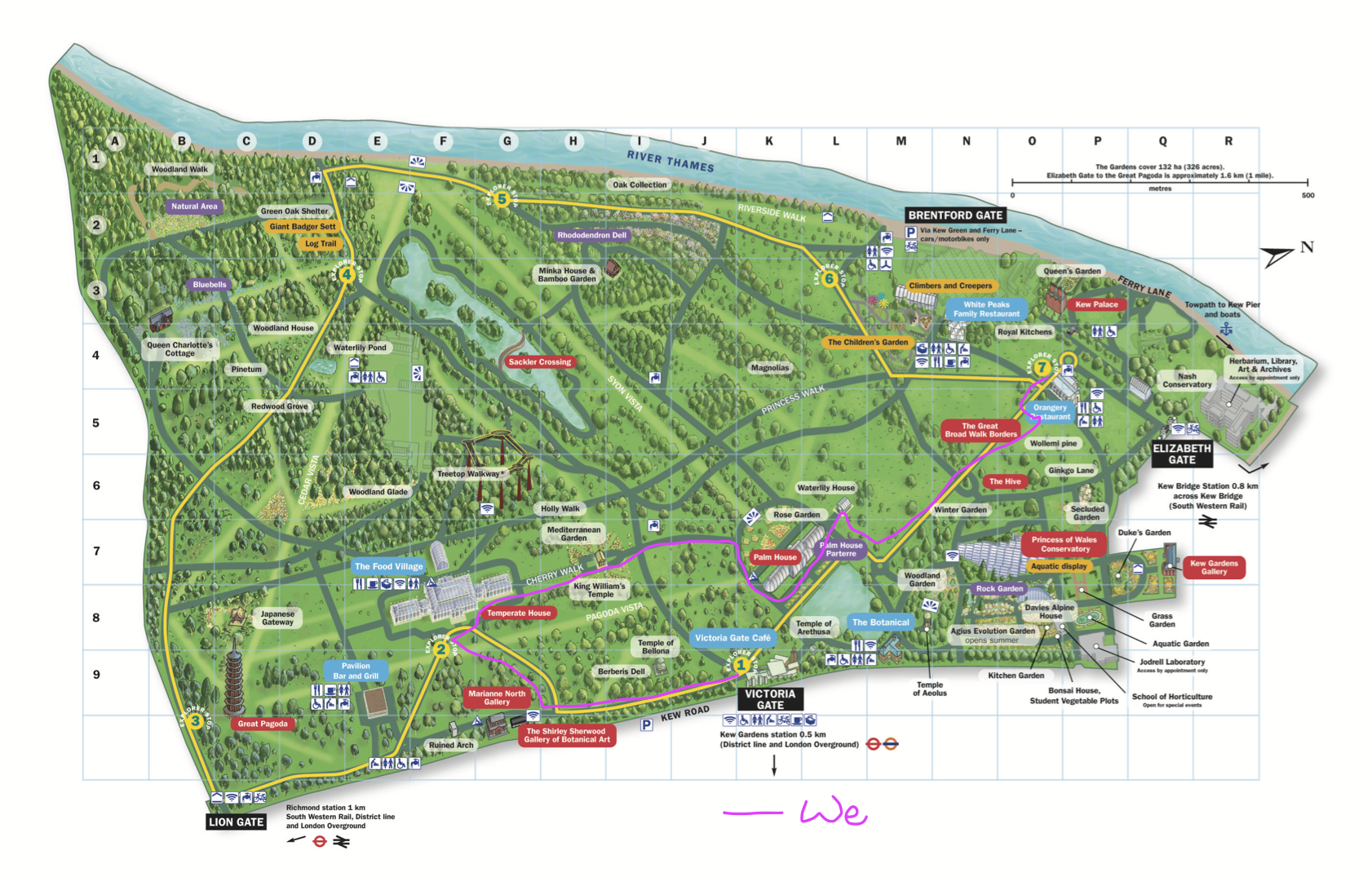園區很大很大,以下是園區地圖及我們這次走的路線,沒想到倫敦除了看不完的「博物館館藏」之外,還有一日走不完的皇家花園。