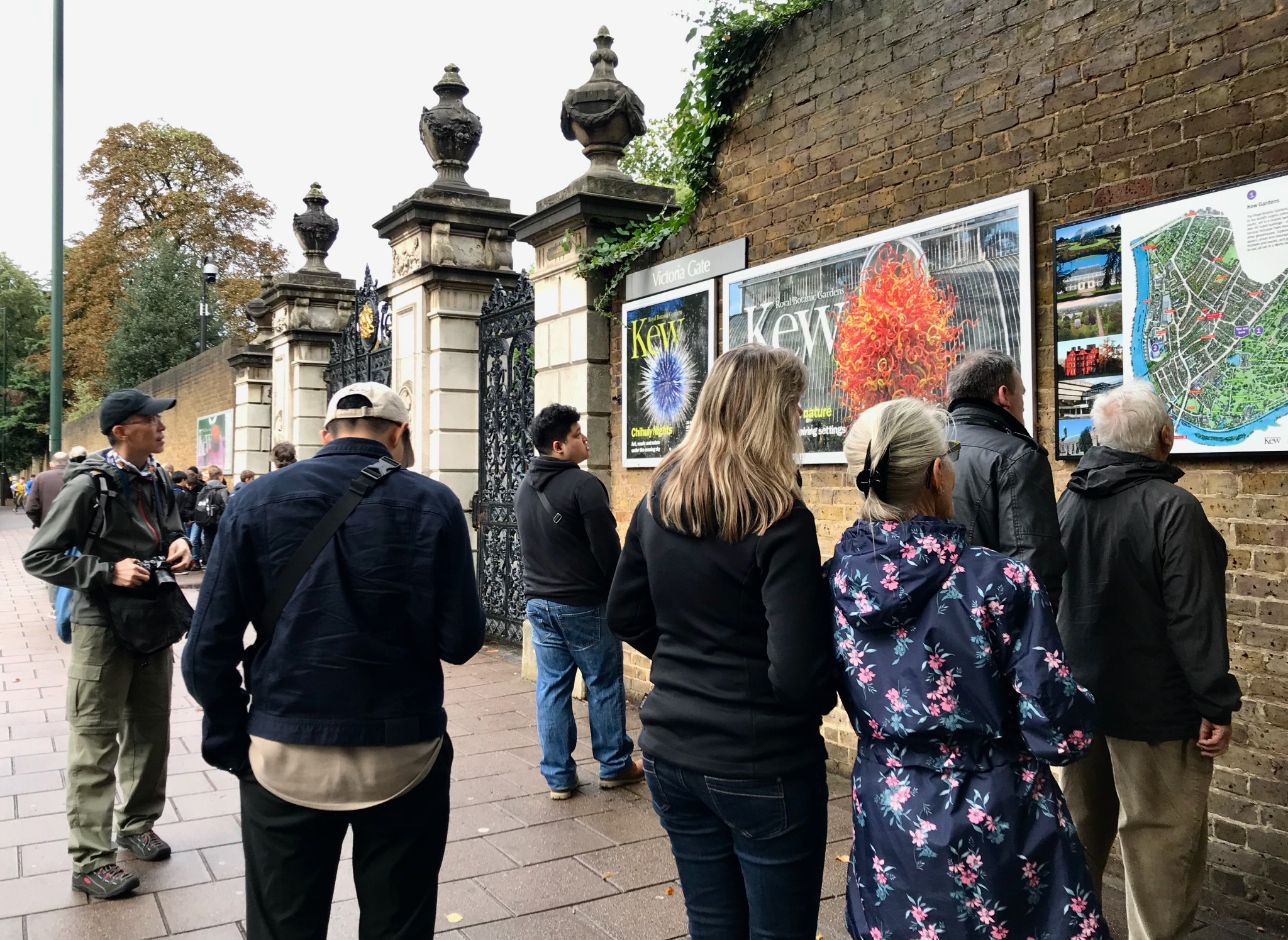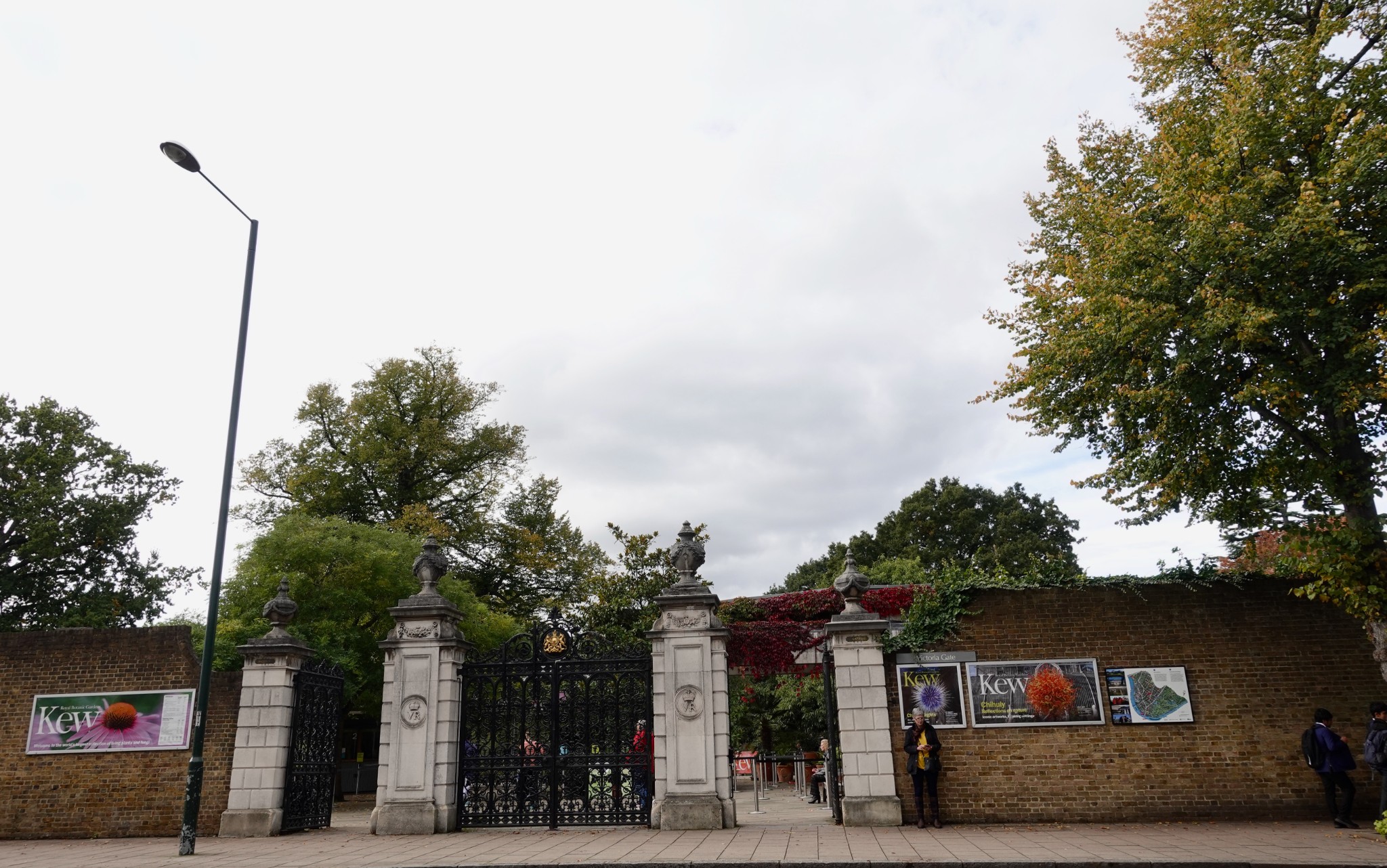 Kew Garden Station 一出站穿越走下到便可直接往邱園方向前進,沿途是高級住宅區,有不少溫馨的小店,我們到的時間還早,店開的不多,自車站出來後周邊溫馨的景色便開始了「視覺的滿足」。不一會兒功夫就來到 Victoria Gate.