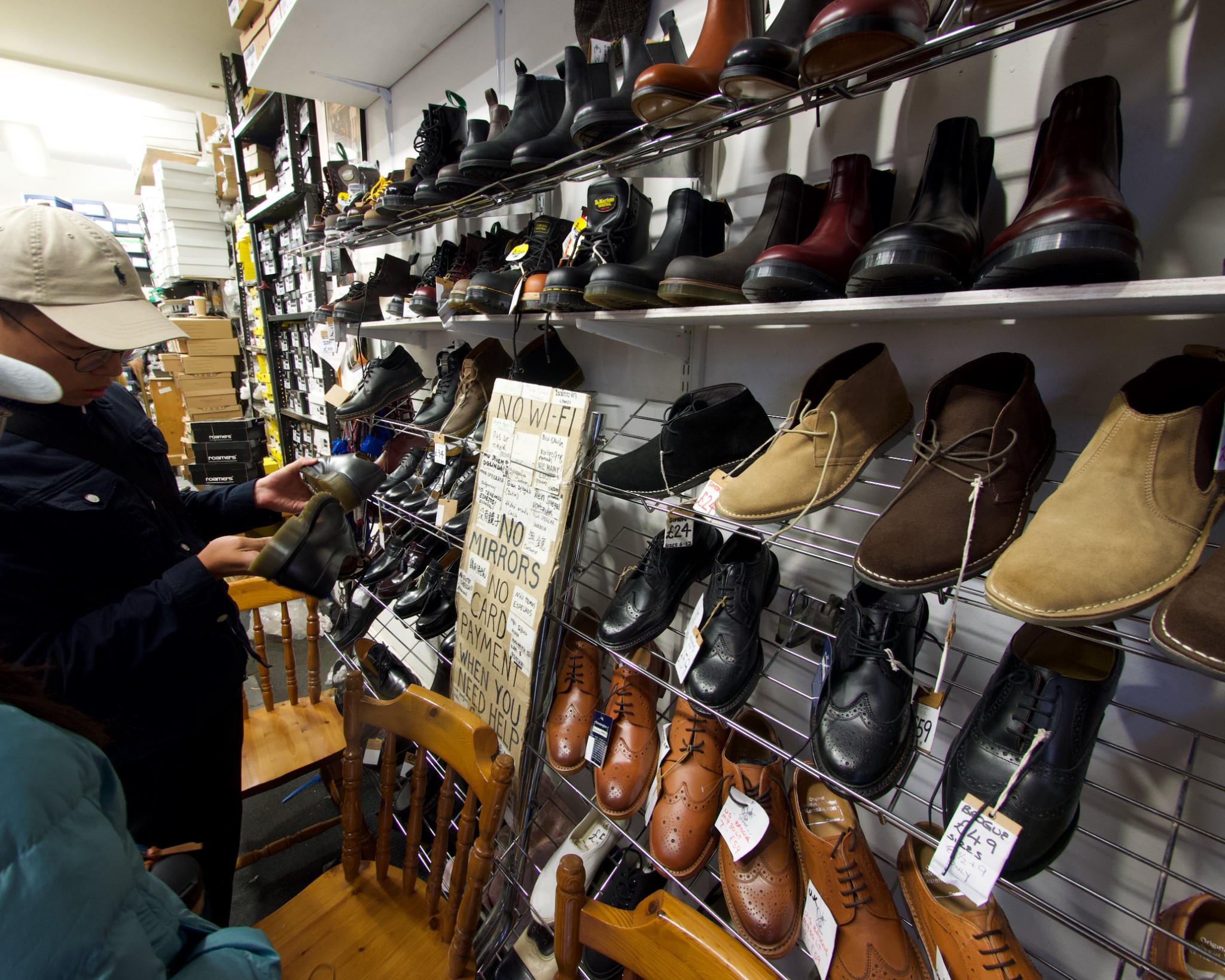 有一家知名的二手馬汀鞋專賣店(BLACKMANS),看起來老闆頗具盛名,慕名前來的遊客真不好,尤其是說華文的,看起來台灣遊客來的不少,老闆社交超強的,一進門就直接操中文,並問是不是來自台灣,若是,則再問, 台北 ? 台中 ? 高雄 ? 真是做生意高手呀~ 陸續進來的遊客許多會持著旅遊書尋到此處呢,兒子也是在出發前查網路資料而得知的~